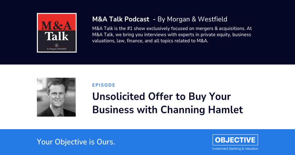Channing Hamlet recently joined the M&A Talk podcast, by Morgan & Westfield, as a guest expert. In this episode “How to Deal with Unsolicited Offer in Buying Your Business,” Channing Hamlet discusses what information to have at your fingertips and how to avoid a potential bait-and-switch marketing ploy. He discusses handling different situations, the importance of doing market research on your own company, understanding the marketplace and potential valuations so you can respond with knowledge rather than a gut reaction.